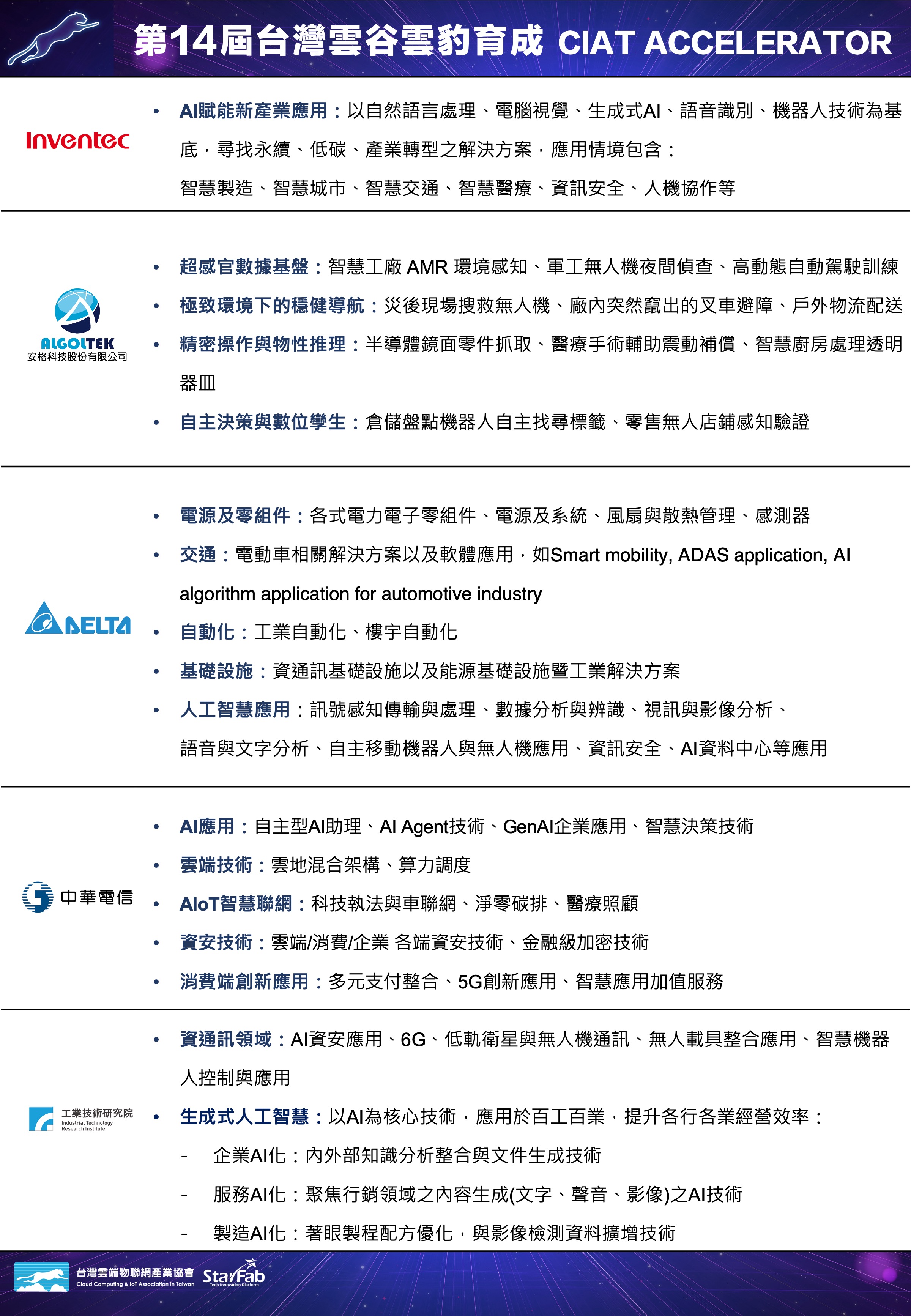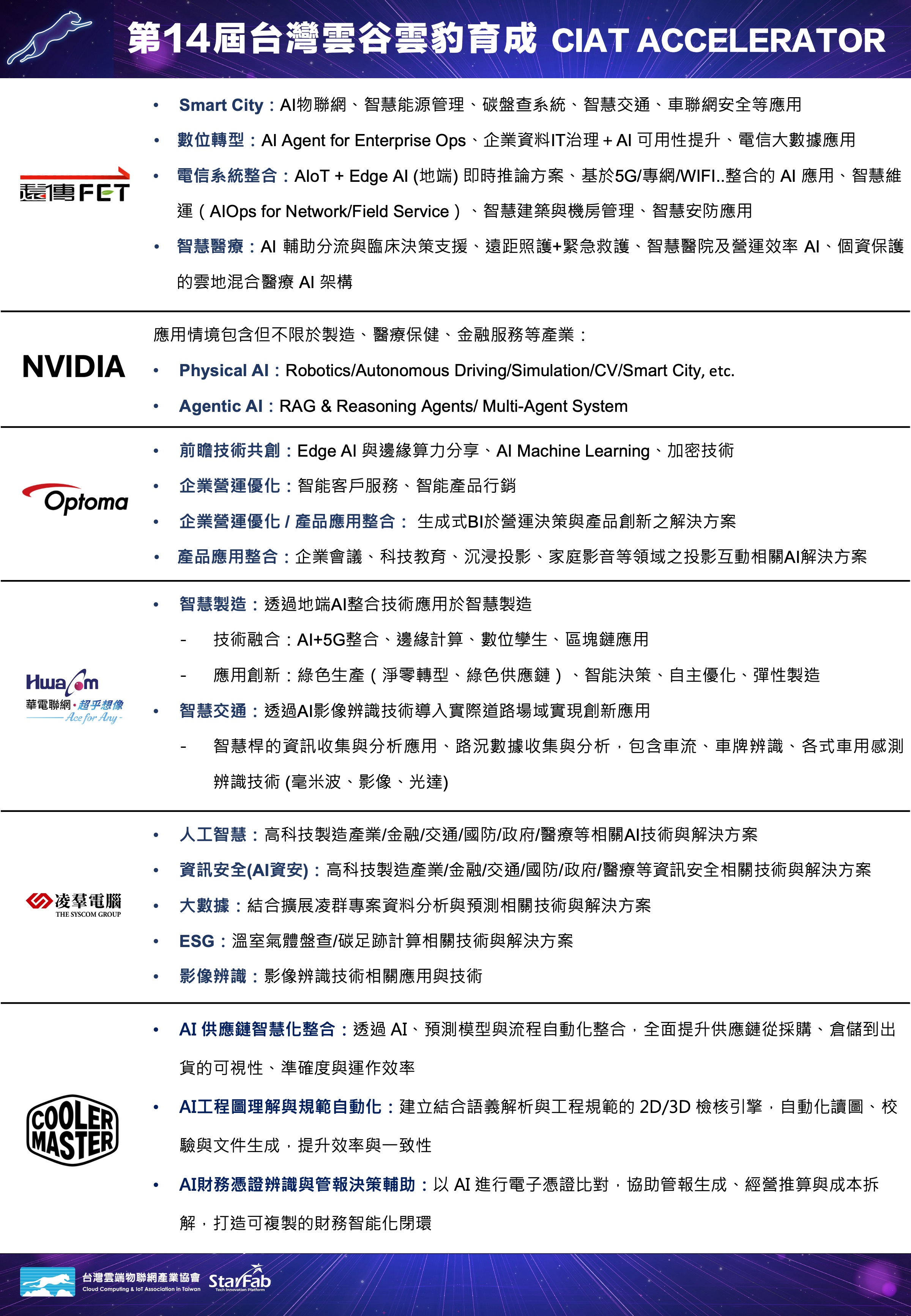 🎯 大小共創,卓越領航 | 第14屆雲豹育成集結指標企業:遠傳電信、NVIDIA、奧圖碼、華電聯網、凌群電腦、Cooler Master、英業達、安格科技、台達電子、中華電信、工研院共同領航,協助新創與企業創造市場典範案例,進軍國際市場!